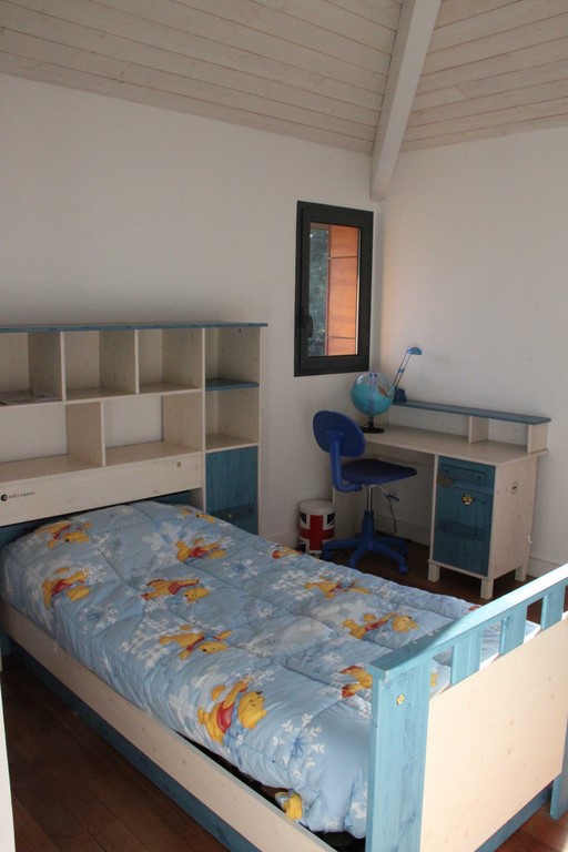 Deuxième chambre avec deux lits en 90 superposés. Un autre lit en 90. Placard.