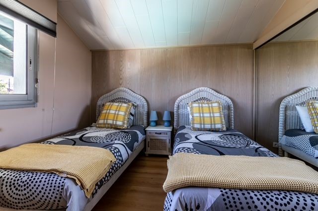 Troisième chambre avec deux lits en 90. Meuble penderie. Télévision.