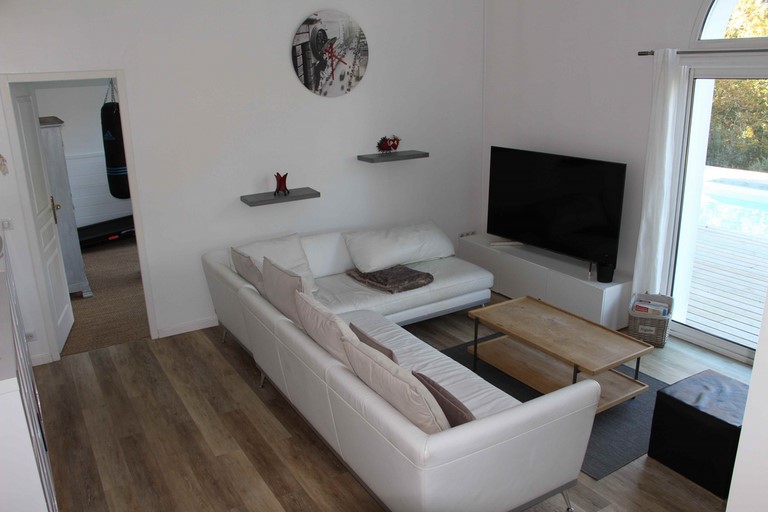 Salon – Séjour avec accès jardin. Télévision. Wi-fi.