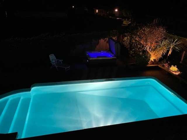 Le parc arboré est illuminé sur toute la propriété offrant toutes les opportunités pour vos soirées en bord de piscine ou dans le SPA.