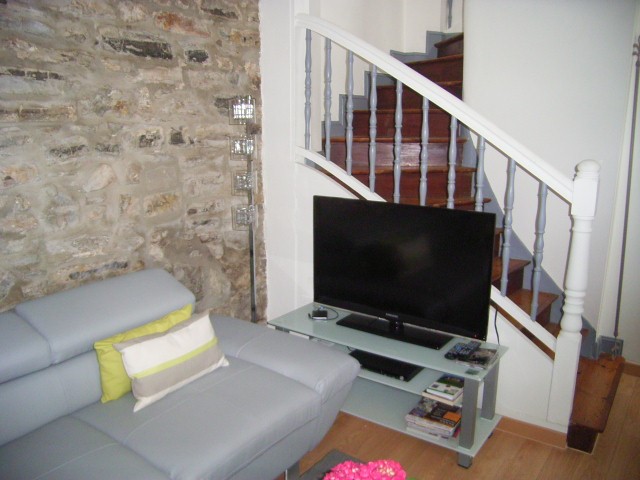 Salon – Séjour avec télévision et lecteur dvd. Enceintes pour Iphone.