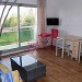 Salon – Séjour avec canapé convertible deux places (140). Télévision. Accès terrasse.